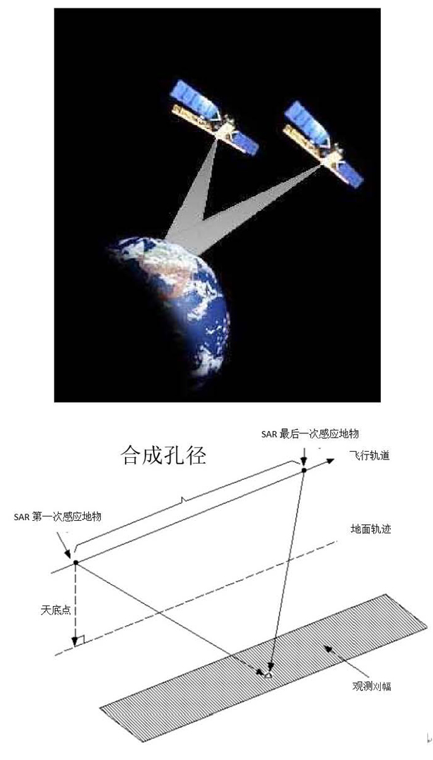SAR是輻射源(如衛(wèi)星)沿著一定方向不斷移動(dòng),在不同位置上接收同一地物的回波信號(hào)并進(jìn)行相關(guān)解調(diào)壓縮處理的側(cè)視雷達(dá)。合成孔徑就是衛(wèi)星接收同一地物這段時(shí)間在軌道上行駛的距離。SAR獲取數(shù)據(jù)不受氣象條件影響,能夠長(zhǎng)時(shí)間、大范圍的對(duì)地表進(jìn)行穩(wěn)定、連續(xù)的觀測(cè),通過提供與地物散射特性有關(guān)的幅度、相位、頻率和極化等豐富信息,揭示地學(xué)現(xiàn)象的時(shí)空變化規(guī)律,具有巨大的應(yīng)用潛力。